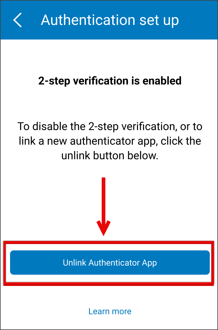 - Select Unlink Authenticator App. This action disables the active MFA configuration.