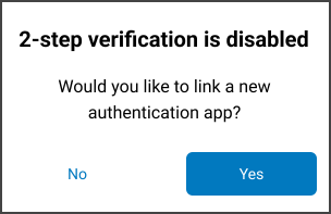 - When the 2-step verification is disabled popup appears, choose one of the following: