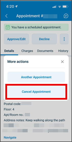 /profile/appointments/{id}/cancel | POST | Apply | Submit cancellatio |