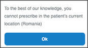 - A static message explaining that prescribing is restricted for the patient’s region.