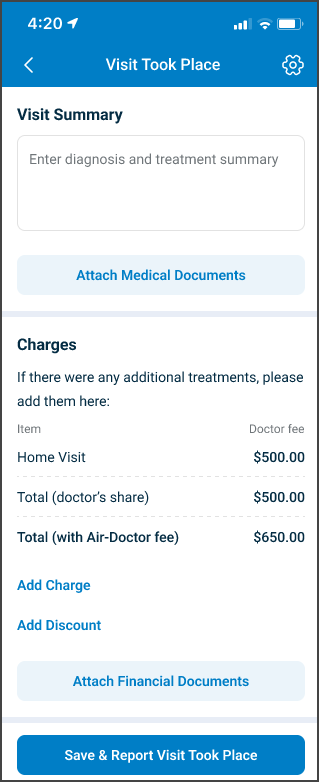 Use the Visit Took Place screen to complete appointments after a doctor finishes a visit.