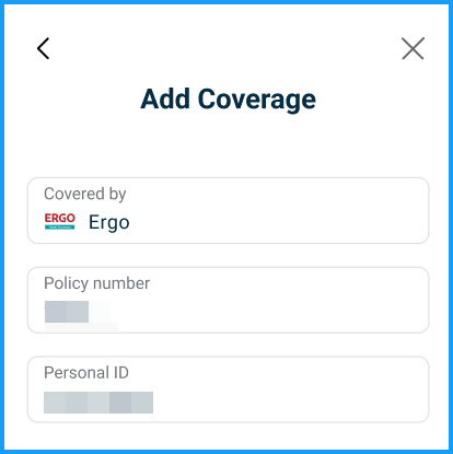 The screen opens when no validated coverage exists or when the user selects Add Coverage from the policy selector.