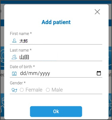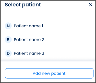 | Select an existing patient | The app updates the patient context and closes the selector. |