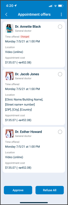- A list of appointment offer cards.