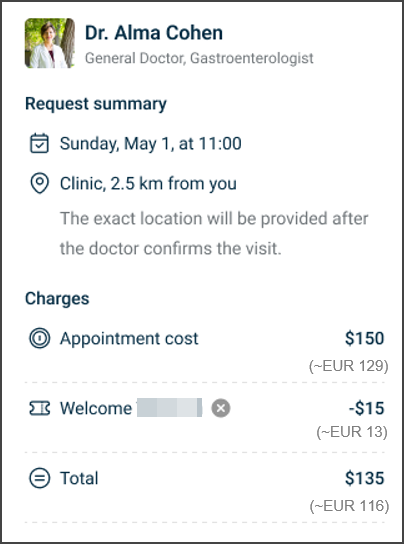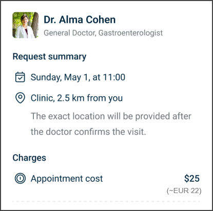 - Show an approximate converted amount when the appointment currency differs.