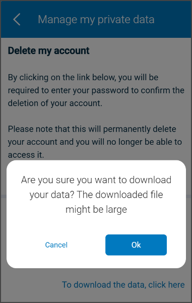 - A Download my data link that starts the export flow.