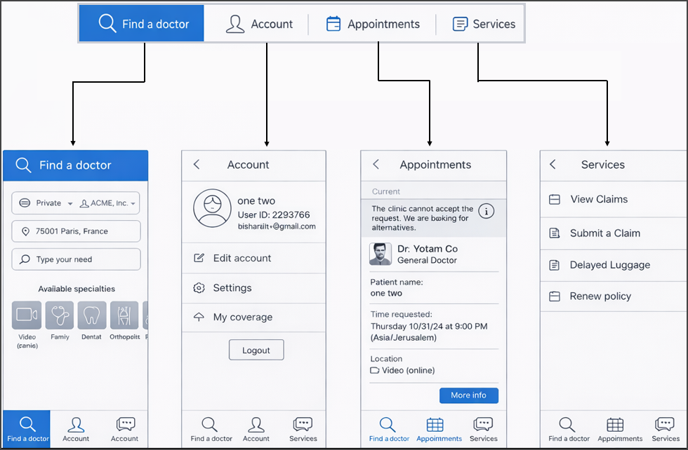 | The user has no authenticated session and selects Appointments. | Shows the sign-in entry flow when required. |