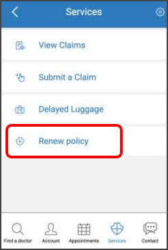 For certain insurers, the Renew Policy service links to the insurer’s website for users who want to renew their policy for continued use in the Air Doctor app.